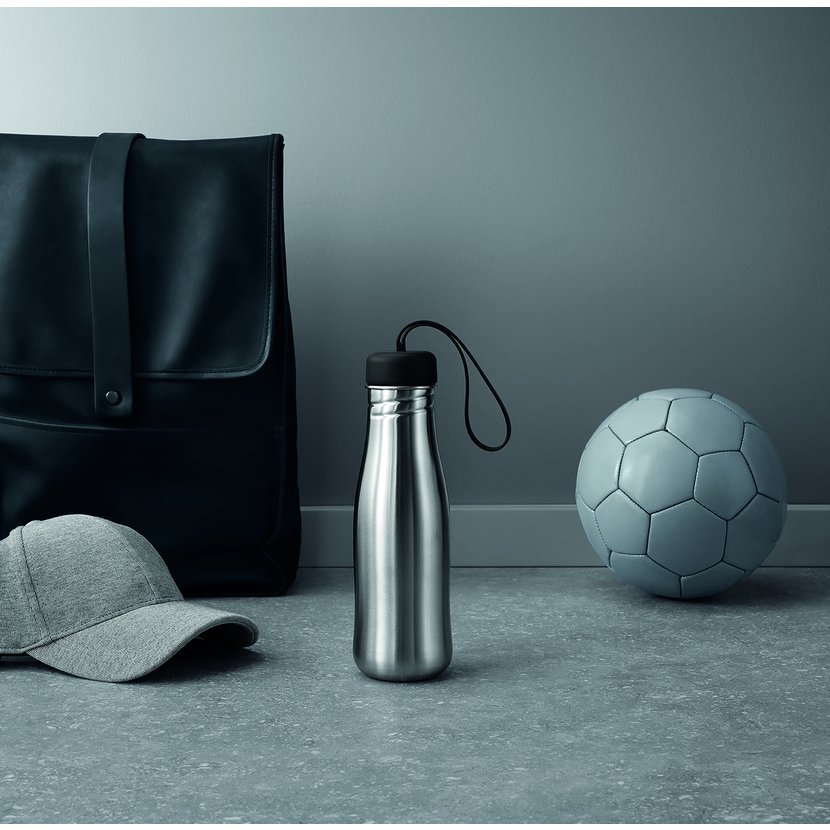 Láhev na pití Active je vyrobena z nerezové oceli a má nápaditý design. Láhev perfektně těsní a může být kdykoliv doplněna, což šetří životní prostředí. Má zároveň šikovné poutko, takže si ji můžete vzít všude s sebou.