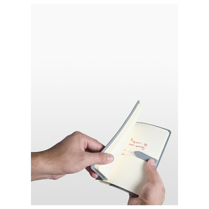 - Flexibilní šitý hřbet, který umožňuje notes překládat napůl, aniž by se při tom rozlomil
