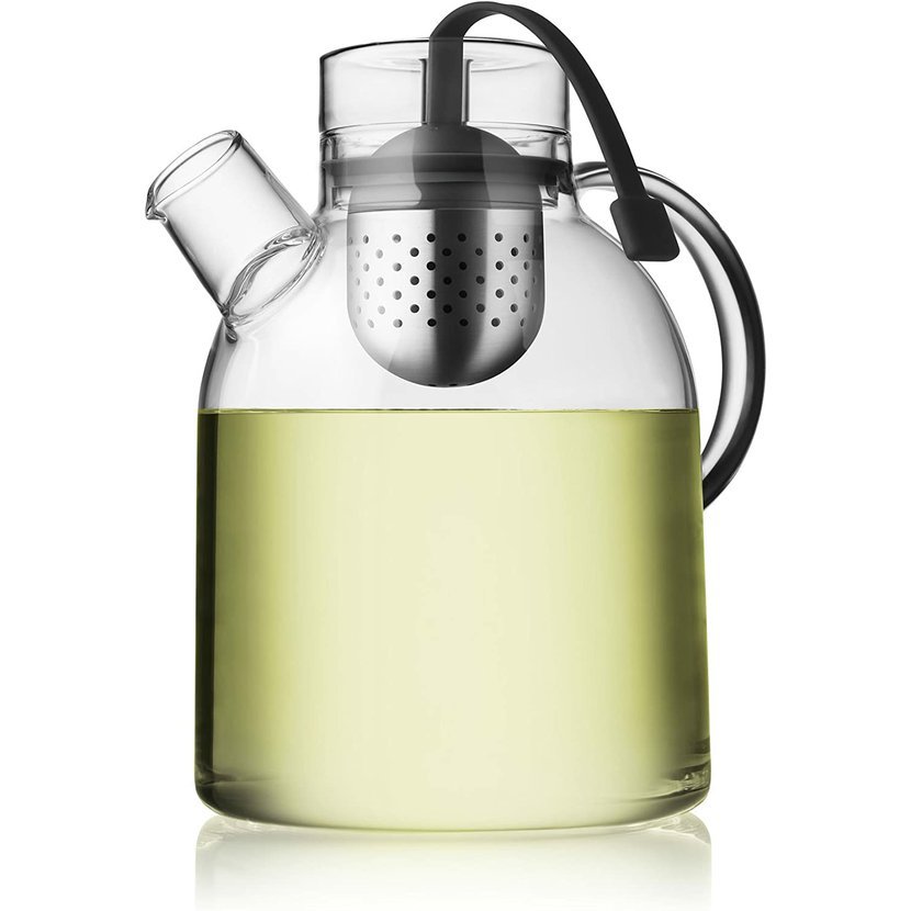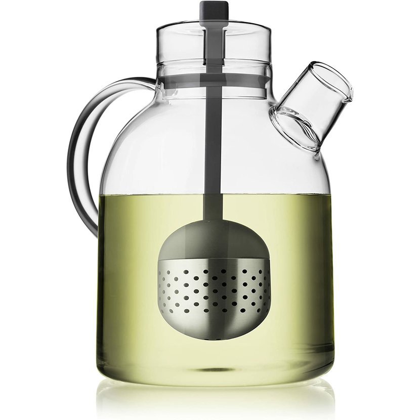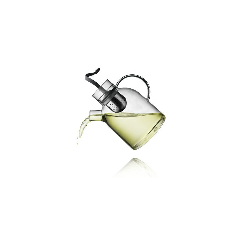 Skleněná konvice na čaj. Čajítko udrží sypaný čaj uvnitř. Po vylouhování stačí sítko vytáhnout. Při nalévání ho lze vytáhnout a nebude bránit při nalévání čaje.