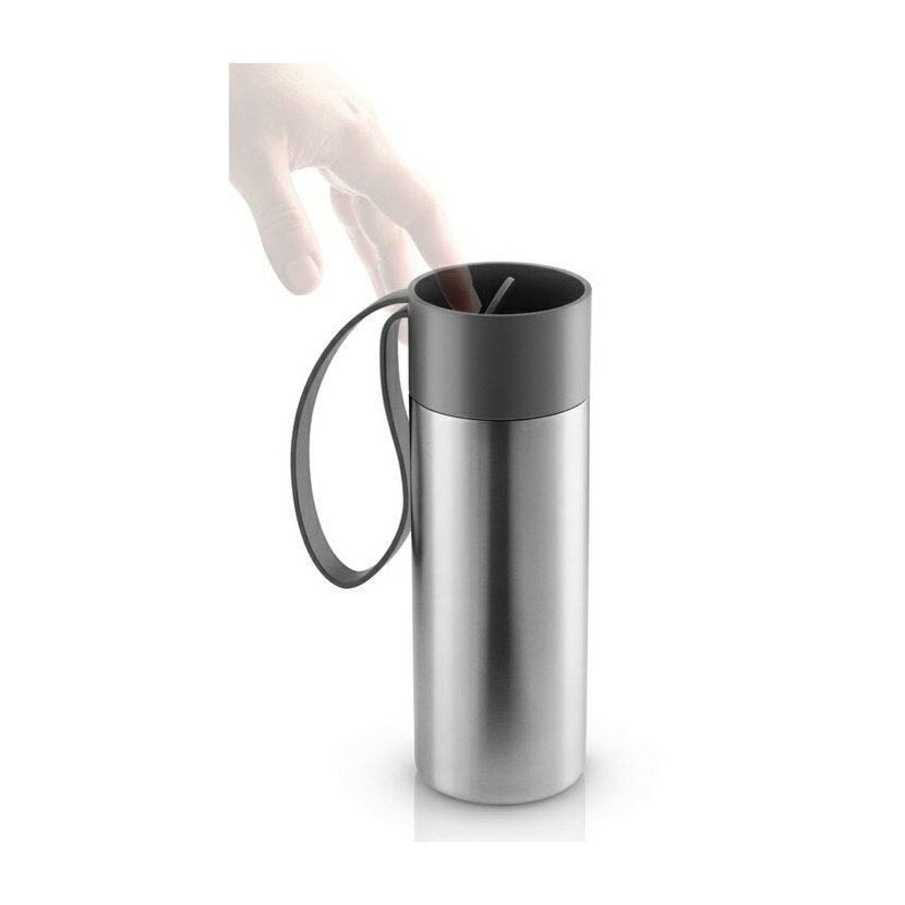 Vezměte si svůj oblíbený nápoj sebou. Dvoustěnný vakuový termohrnek má praktické poutko-je jednoduché ho uchopit i nosit. Funkční víčko s “klik” funkcí umožuje jednoduché ovládání jednou rukou. Vejde se do držáků hrnků většiny aut. Objem 0,35l.