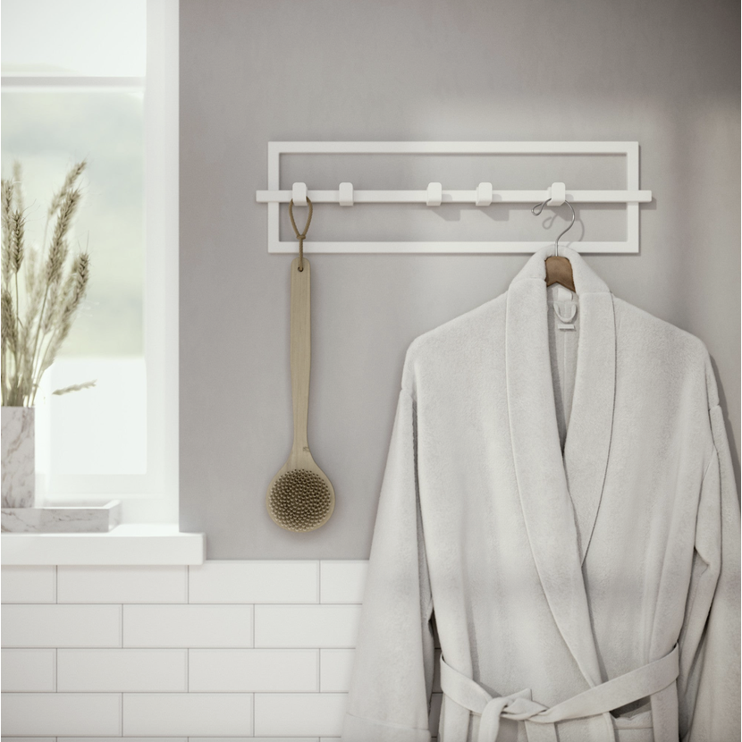 Nástěnný věšák s posuvnými háčky. Věšák se skvěle hodí do chodby nebo do pokoje. Nosnost jednoho háčku je 2,3kg. Materiál: kov Rozměry: 53 x 6 x15 cm