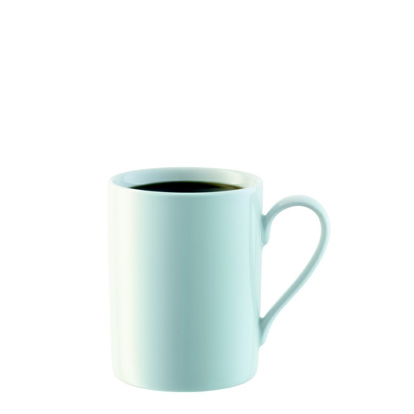 Pečlivě navržený tvar hrnku z čistě bílého porcelánu je vhodný pro servírování čaje nebo kávy.
