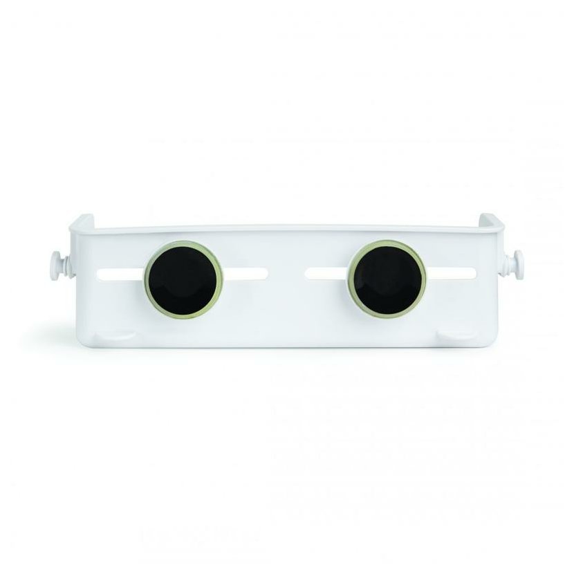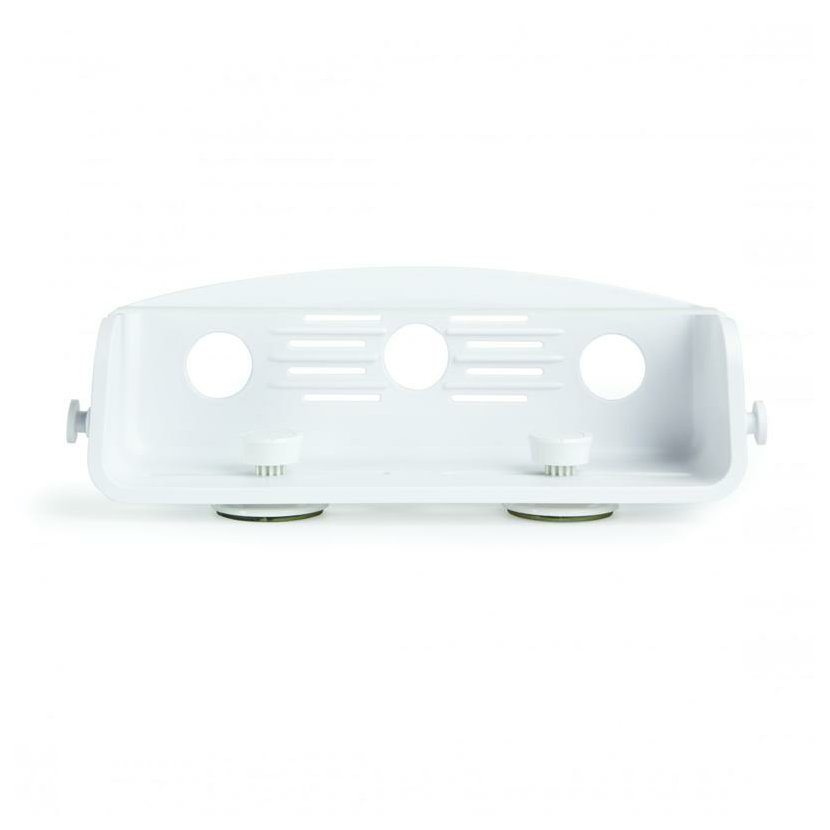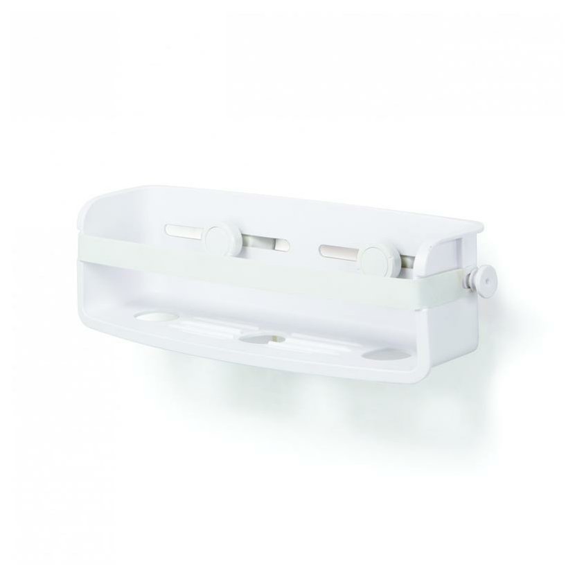 Polička do koupelny Umbra FLEX SURE-LOCK - bílá. Univerzální koupelnová police k odkládání šámpónů, dekorativní kosmetiky apod., včetně dvou otvorů pro uložení žiletek nebo kartáčů na vlasy.