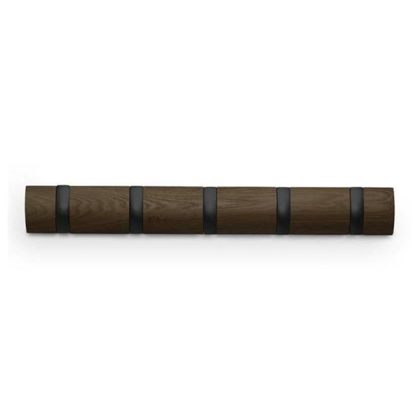 Věšák stěnu FLIP s 5 háčky v barvě hnědočerné a elegantním designu.