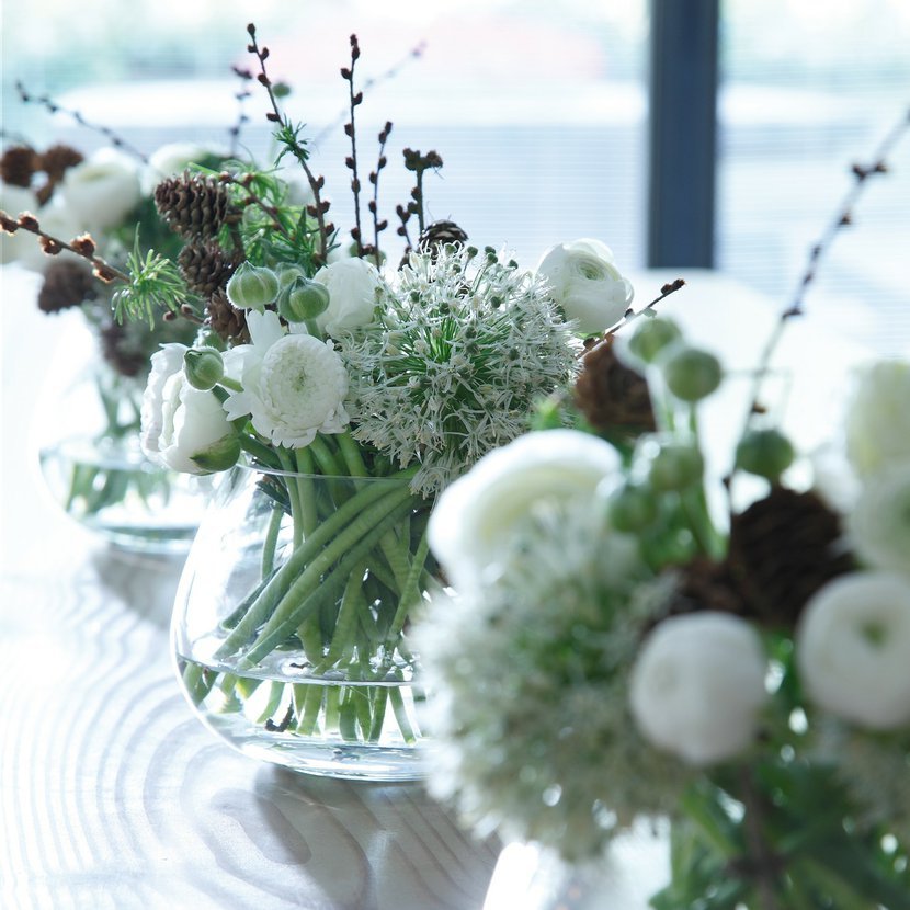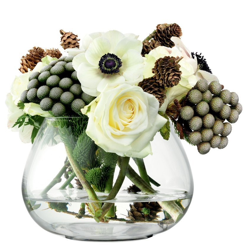 Flower skleněná váza pro aranžmá na stůl čirá, v.11.5cm, LSA, Handmade