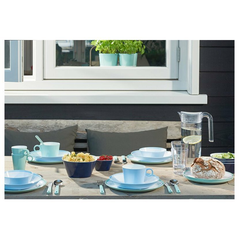 Tento velký (300 ml) hrnek od Mepalu patří do kolekce nádobí Flow. Kombinace současného stylového designu a skvělých praktických funkcí činí kolekci nádobí Flow jedinečnou. Je vyroben z lehkého, odolného melaminu a je stohovatelný. To usnadňuje skladování v menších zásuvkách nebo skříních v lodi, karavanu nebo karavanu. Nádobí Flow mimo nádobí je k dispozici v různých nádherných barvách a potiscích a skládá se mís, talířů, sklenic a šálků. Zábava kombinovat!