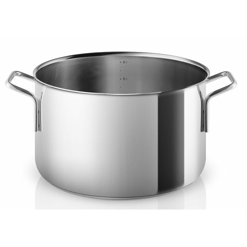 Eva Trio: Rendlíky, kastroly a soté pánve jsou z nerezové oceli 18/10 0,8 mm. Smažicí pánev s nepřilnavým povrchem je z nerezové oceli 18/10 0,6 mm. Uzavřené sendvičové dno z nerezové oceli 18/10 a 5,0 mm hliník; indukční dno 0,5 mm 18/0 ocel; strany 0,8 mm 18/10. Celkem 6,3 mm. Rukojeti: nerezová ocel 18/10. Nýtovací materiál: hliník Nádobí má indukční varnou zónu. Lze mýt v myčce. Design: Ole Palsby