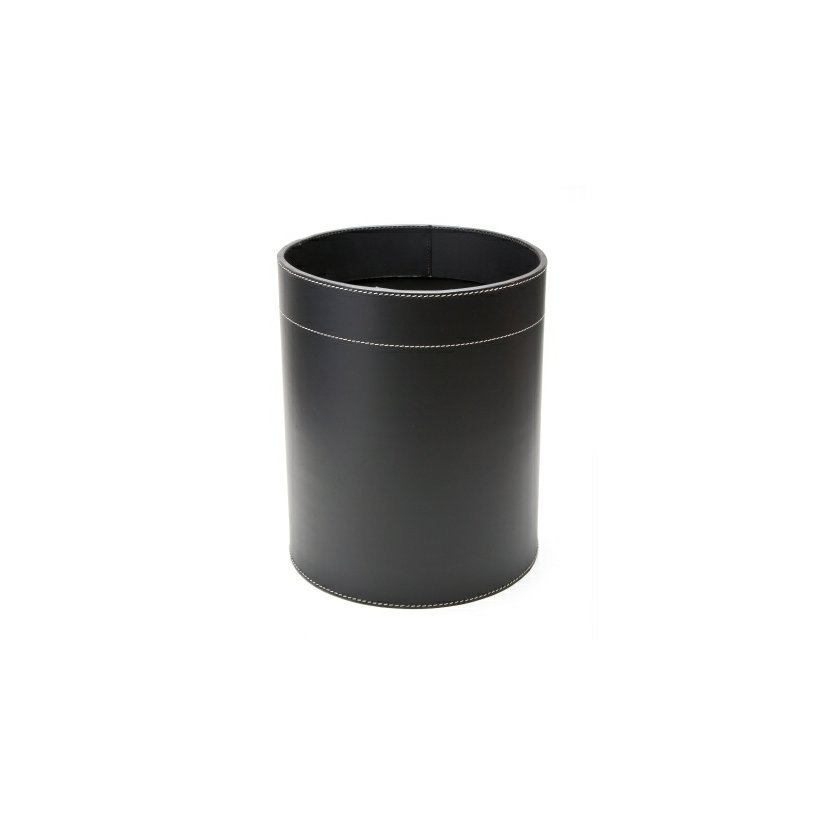 Kožený koš na papír, černý s bílým prošitím, Orskov
