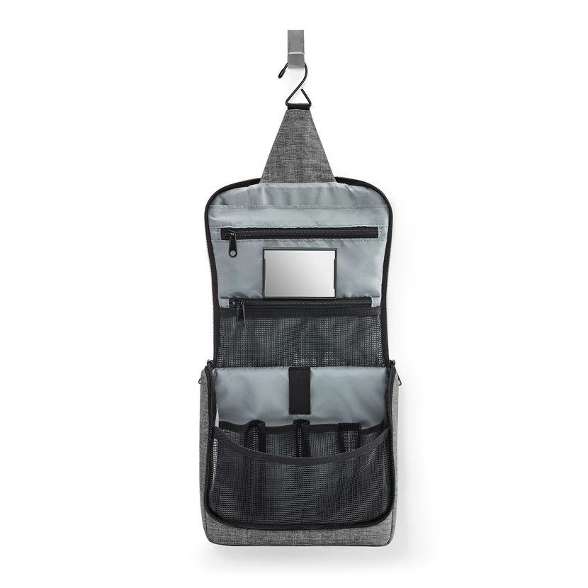 Toaletní taška TOILETBAG je toaletní taškou pro každého! Díky dostatečnému prostoru a rafinovanému členění nabízí systém a pořádek. Má jednu velkou hlavní přihrádku ze vzdušné síťoviny se čtyřmi dalšími kapsami, dvě kapsy na zip ve víku, zrcátko se suchým zipem a háček na pověšení. Použitým materiálem je odolný polyester.
