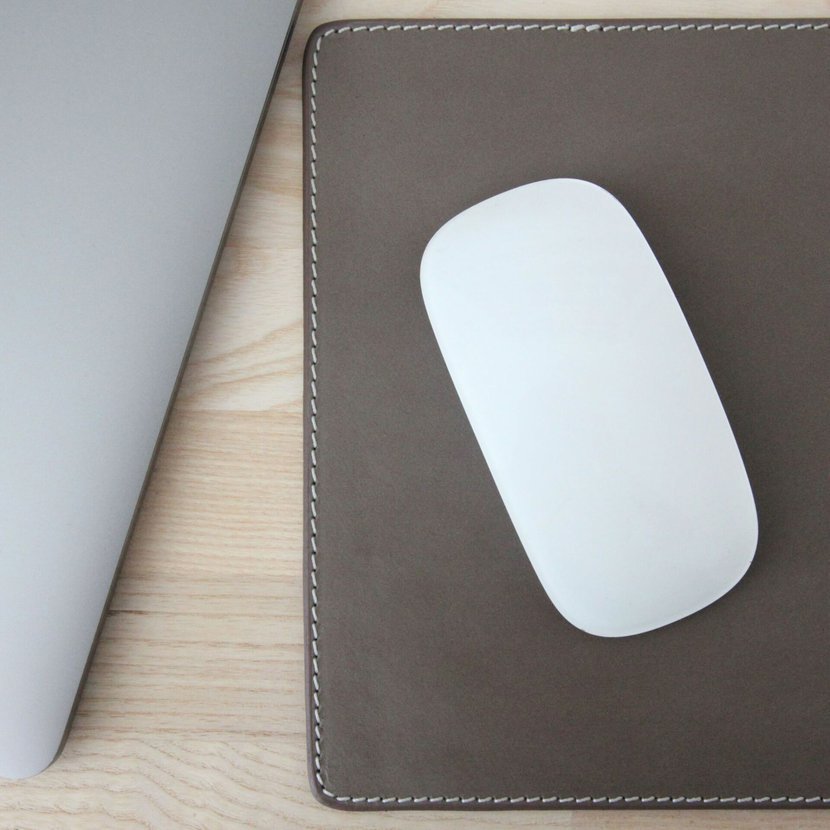 Kožená podložka pod myš má krásně hladký povrch a je dostatečně široká, tj. 20 centimetrů na délku i šířku. Oblé okraje i hrany netlačí do zápěstí při pohybu ruky po podložce.