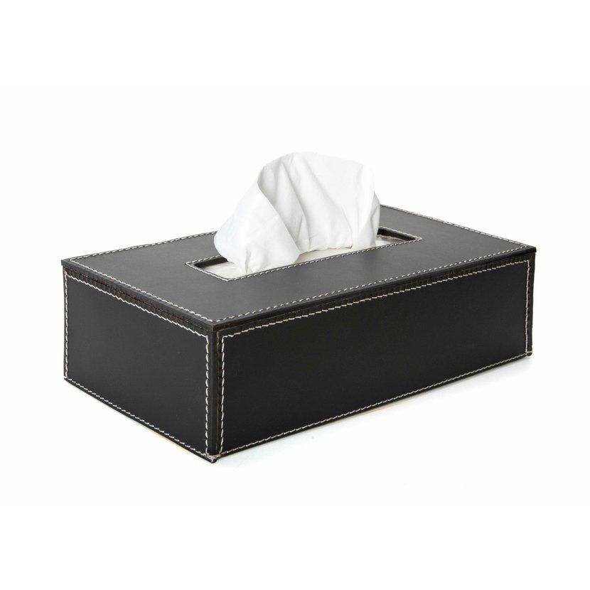 Kožený box na kapesníky černý s bílými švy, Orskov