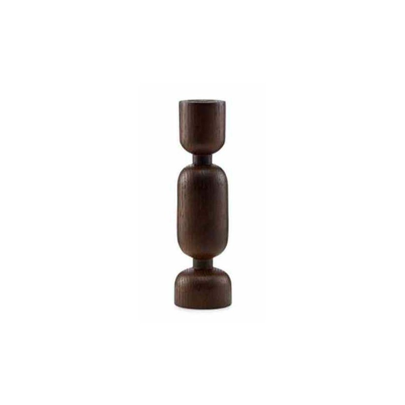 Svícny Lumberjack (dřevorubec) mají klasický vzhled a charakter historického stylu. Kombinace hladkého povrchu, štíhlých, zaoblených křivek a kresby přírodního masivu vytváří jedinečný předmět, který vynikne v jakémkoliv interiéru. Ve spodní části svícnu je přidaná hmotnost, aby byla zajištěna jeho stabilita. Vyrobeno z jednoho kusu dřeva. Řada Lumberjack se vyrábí ve třech velikostech a nabízí různé druhy dřeva. Také namíchané typy svícnů této řady působí úžasným dojmem. Čistěte vlhkým hadříkem. Materiál: mořený dub Rozměry (cm): průměr 4,2, výška 16, váha 0,2 kg