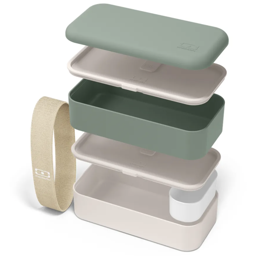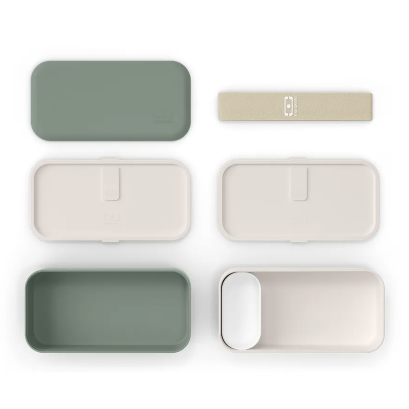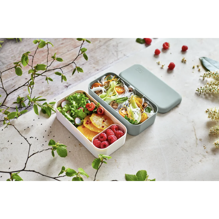 Inspirací pro krabičky na jídlo Monbento jsou tradiční japonské bento boxy - díky perfektnímu těsnění a vnitřní mističce na oddělení jídla zůstane váš oběd vždy přesně tam, kde má. Díky široké elastické pásce jsou boxy bezpečně udrženy pohromadě. Krabičky jsou navíc přizpůsobeny pro ohřev v mikrovlnné troubě a jejich čištění v myčce na nádobí je snadné. Monbento Original je držitelem dvou prestižních designových ocenění: Gia Award a Reddot Design Award. Materiál: plast s “soft-touch” úpravou, bez BPA, PP, silikon, elastan Rozměry: 18,5 x 9,4 x 10 cm, objem: 1l Obsah balení: • 2 dózy, 1 krycí víčko (materiál PBT) • 2 víčka pro dózy (materiál PBT) • 1 malá mistička (materiál PP) • 2 silikonové uzávěry (materiál Silicone) • 1 elastická páska (materiál Elastane) Produkt je vyroben ve Francii.