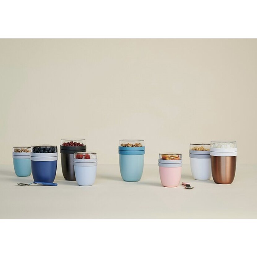 Nádoba na jídlo mini je ideální na jídlo, jako je jogurt s müsli nebo polévka s krutony. Díky dvěma různým přihrádkám zůstanou vaše ingredience pěkně oddělené.