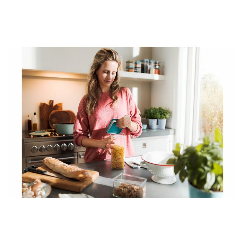 Úložný box Omnia má obdélníkový tvar a objem 2000 ml. Můžete v něm skladovat cokoliv: od kávových zrnek po obyčejné vločky.