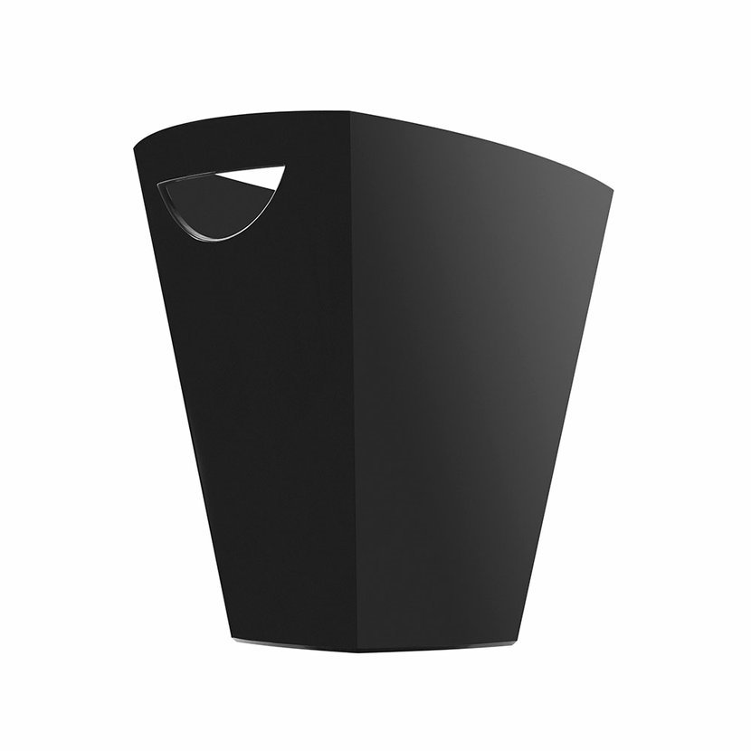 Inovativní kyblík na led s elegantními, hranatými liniemi, pro chlazení a přepravu lahve s nápojem.