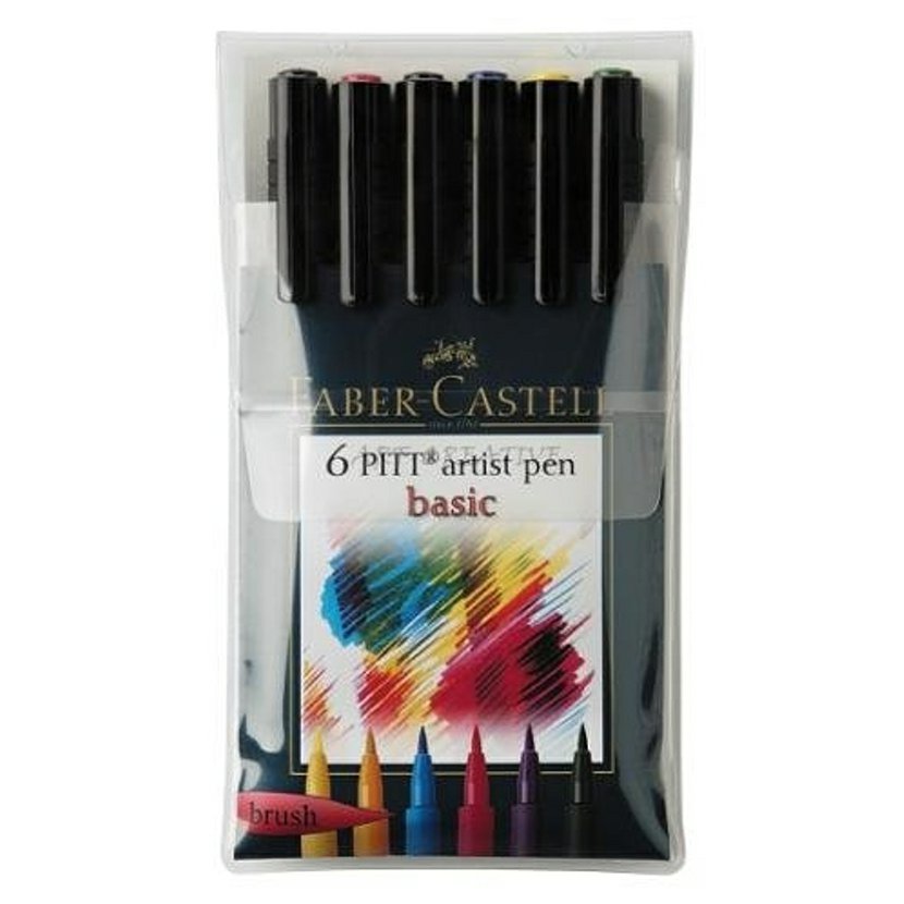 Základní sada 6 barevných popisovačů z řady Pitt, stálobarevné, bez obsahu kyselin, voděodolné.