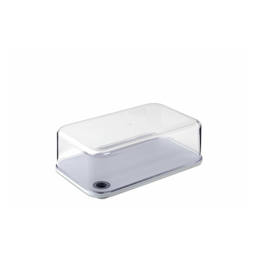 Servírovací box Modula na sýry má průhledné víko, díky kterému vždy vidíte, co je uvnitř. Víko dobře těsní, a proto můžete v boxu skladovat spoustu druhů sýrů a případný nepříjemný zápach zůstane vždy uvnitř.