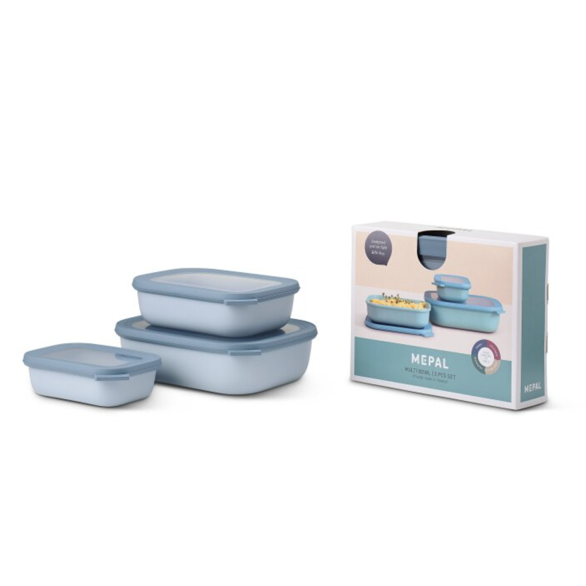Tato sada více misek Mepal Cirqula je opravdu fantastický multi-tasker! Chlaďte, zmrazujte, ohřívejte a podávejte jídlo, vše ve stejné misce. Sada obsahuje velikosti 500 ml, 1000 ml a 2000 ml.