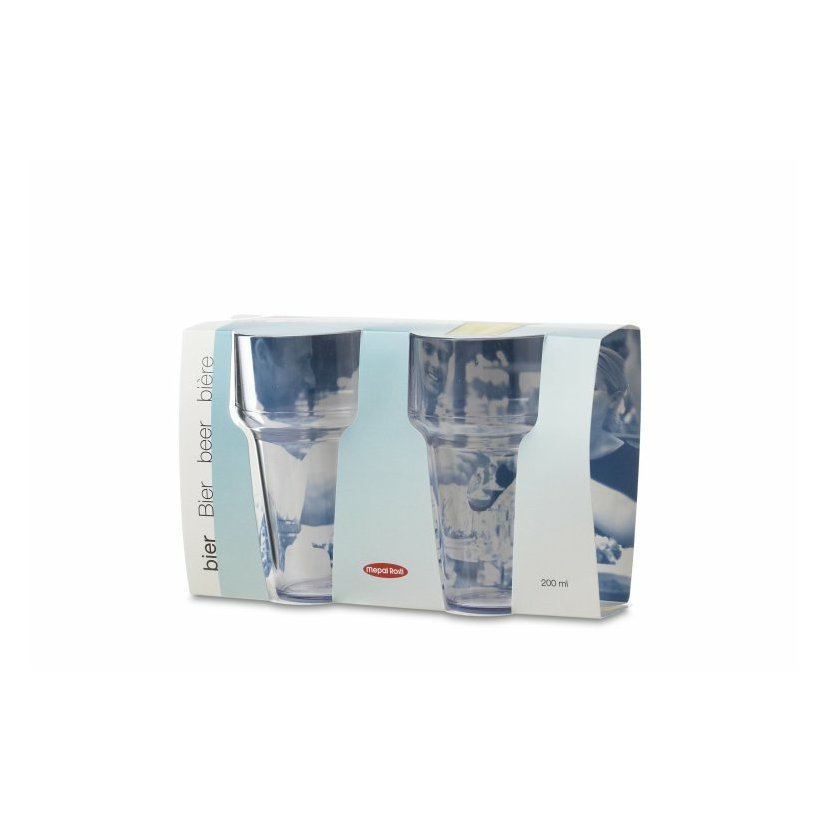 Set se skládá ze dvou pivních sklenic, které jsou vyrobeny z plastu SAN (průhledný a trvanlivý). Jedna sklenice na pivo značky Mepal má objem 250 ml.