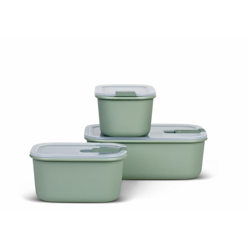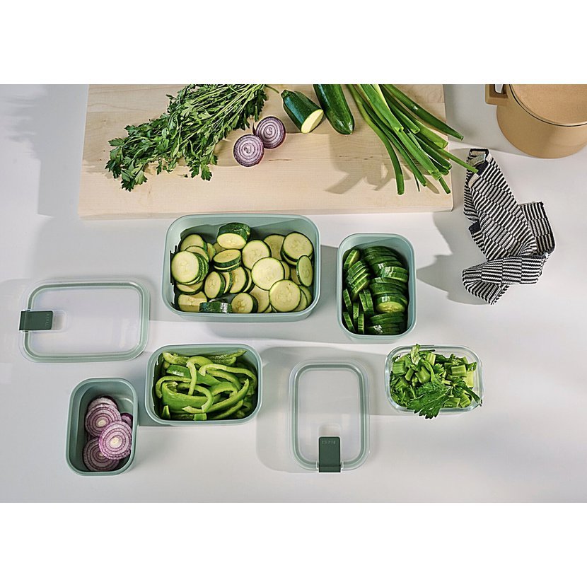 Sada 3 kusů úložných boxů EasyClip je ideální pro uložení vašich oblíbených salátů, lahodných těstovin a chutných zbytků. Sada se skládá z úložných boxů o objemu 2x 450 ml a 1000 ml.