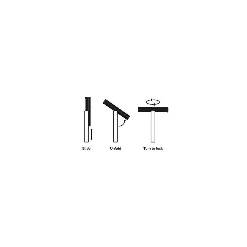 Skládací mechanismus je jednoduchý: Plastová čepel škrabky je standardně uložena v nerezové rukojeti. Pokud chcete škrabku použít, uchopíte rukojeť a druhou rukou čepel škrabky vysunete tak, aby byla kolmo k rukojeti. Poté otočíte rukojetí proti směru hodinových ručiček, čímž zajistíte čepel ve správné poloze.