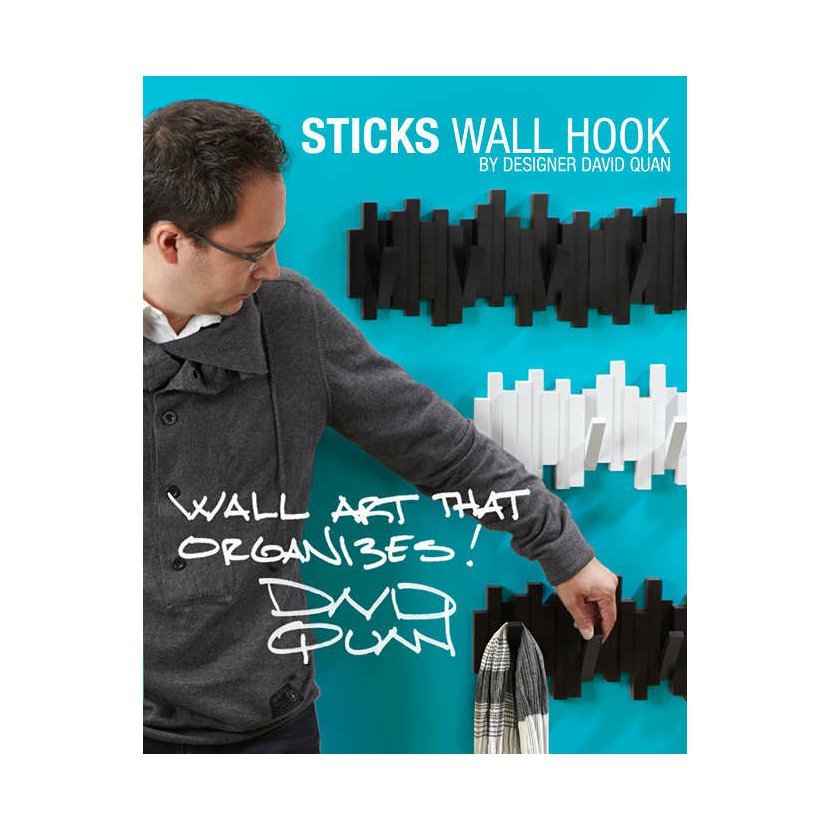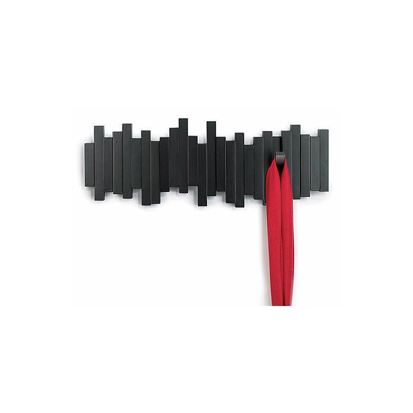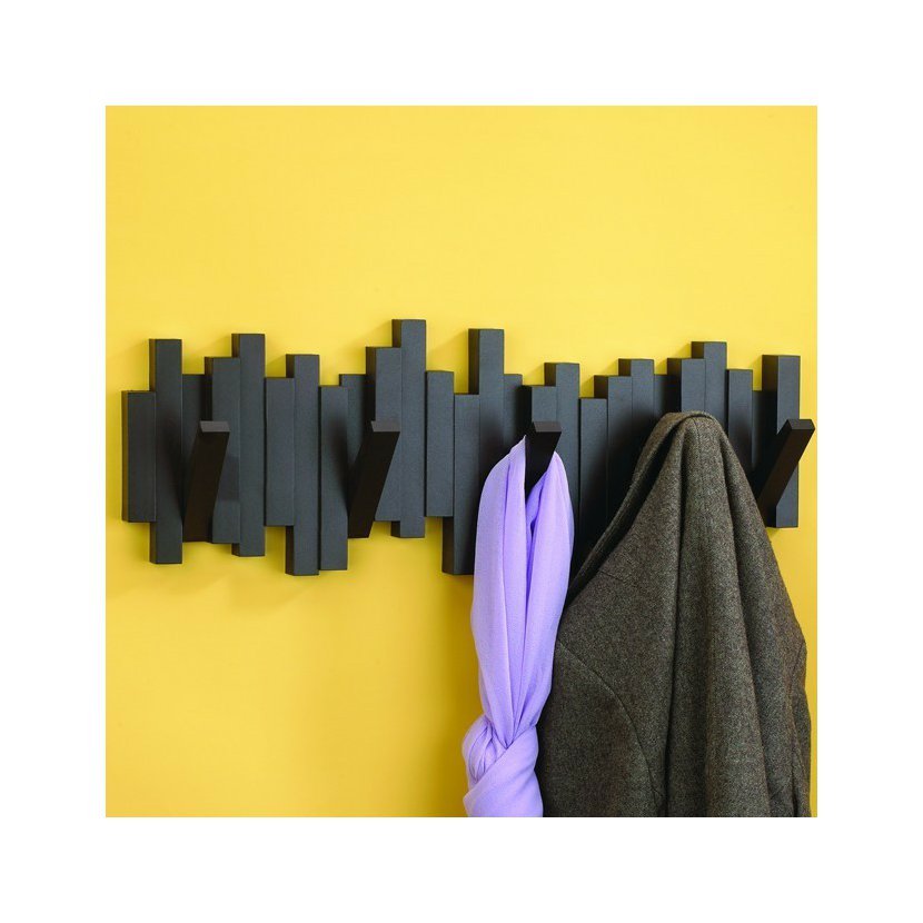 Neobvyklý věšák STICKS s pěti výklopnými háčky v barvě černé a elegantním designu.