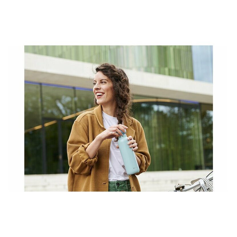Vnější část samozřejmě zůstane chladná a suchá bez ohledu na to, jak horký nebo studený je její obsah. Láhev je vhodná také pro perlivou vodu. Širokým otvorem můžete přidat také kostky ledu.