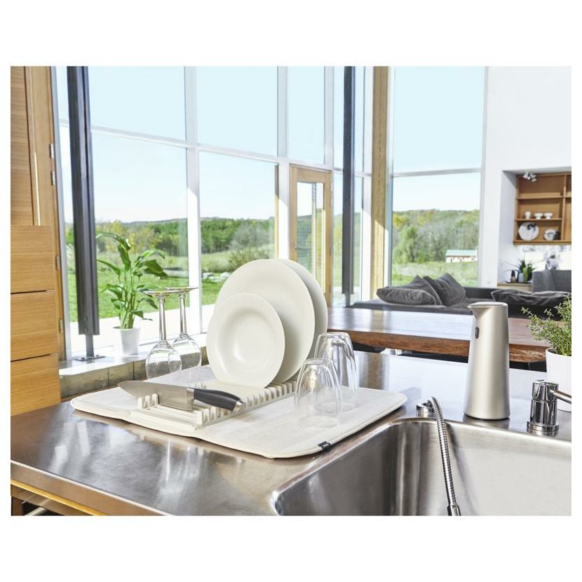 Odkapávací podložka Udry je ze 2 částí-látková podložka a plastové části pro odkládání talířů. Po použití podložku jednoduše vysušíte a složíte. Rozměry: 61x45,7 cm