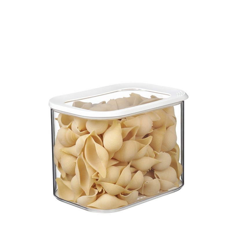 Úložný box Modula 4500 ml má průhledné víko s bílým kroužkem. Tato obdélníková krabička od Mepal má zaoblené rohy a její průhledné víko vám umožní okamžitě vidět její obsah, dokonce i ve vaší kuchyňské zásuvce! Bílý kroužek dokonale padne, díky čemuž je tento velký box ideální pro skladování sušených potravin, jako jsou těstoviny, cereálie, rohlíky nebo koláče. Úložné boxy Modula od Mepal jsou k dispozici v různých velikostech a tvarech, snadno se otevírají, stohují a lze je mýt v myčce. Vynikající praktické vlastnosti v kombinaci se stylovým designem, Modula má vše!