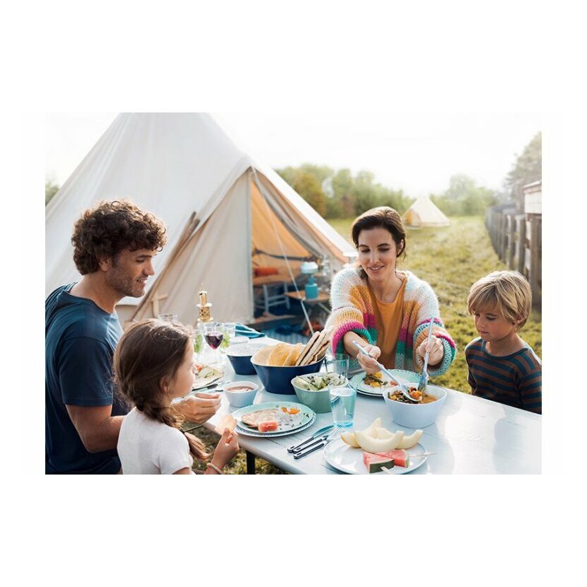 Jídelní talíř Flow od Mepalu je vyroben z melaminu, má průměr 26 cm a je součástí kolekce nádobí Flow. Nádobí Flow vyniká svým moderním designem a schopností stohování. Protože je snadno stohovatelný, dobře se vejde do (kuchyňských) skříní karavanu, lodi nebo obytného vozu. Venkovní nádobí Flow je k dispozici v mnoha barvách a potiscích a skládá se z různých talířů, mís, sklenic a šálků.Zábava kombinovat!